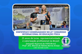 SINPEFEPAR é homenageado no 41º Congresso Internacional de Educação Física da FIEPS/Brasil pelos seus 25 anos de lutas, representatividade sindical e valorização dos profissionais de Educação Física.